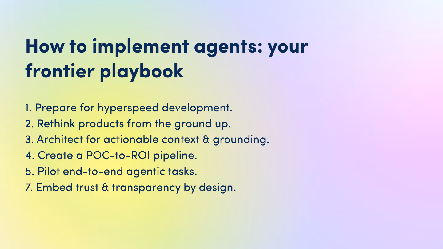 The companies that understand the shift from building tools that users operate to building systems that users delegate to will shape the next decade of technology. How can a company implement agentic AI? Here are critical decisions for leaders navigating this transformation:
